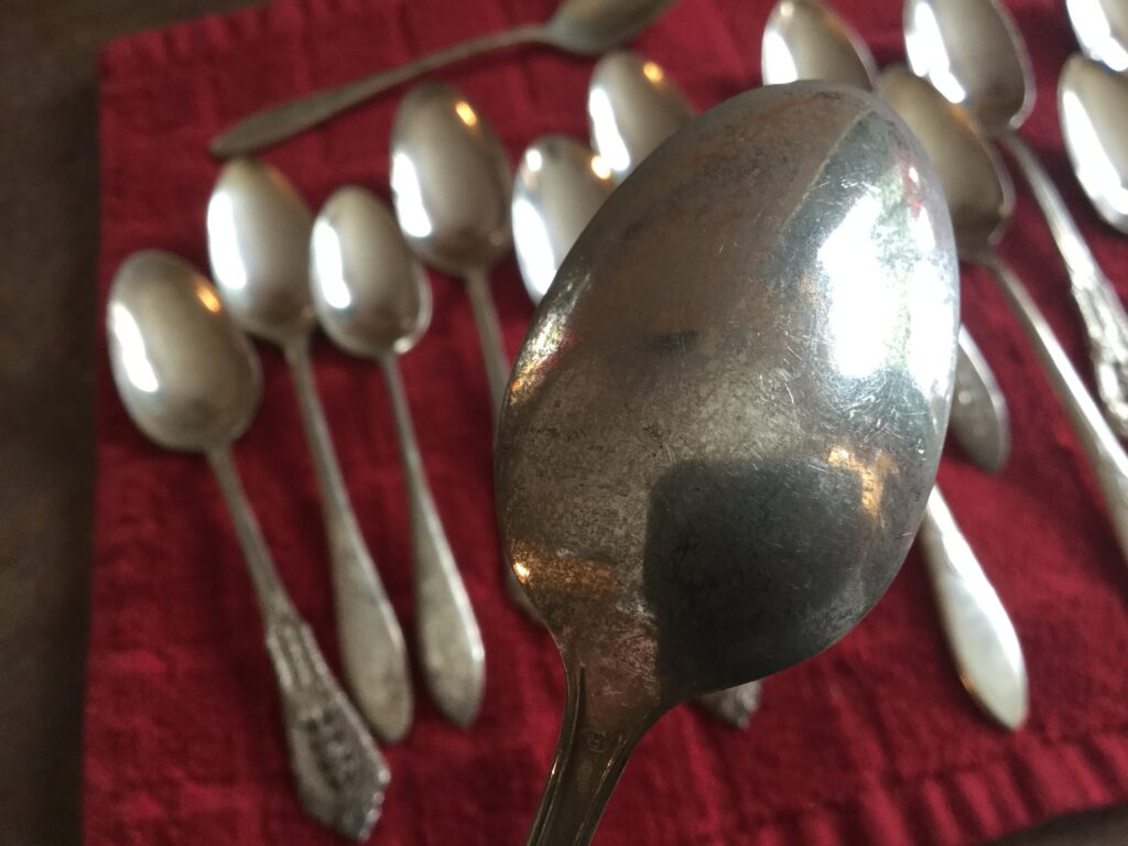 As I’ve been in manic decluttering frenzy the past several months, I’m happening upon a whole lot of possessions I didn’t know I possessed. One of those items was a box full of silver spoons (as in real silver). I believe I inherited them from my Grandma Peggy, but I can’t be certain of that.